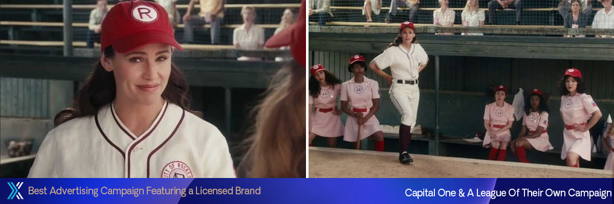 Em abril de 2024, a Capital One lançou ‘No Crying In Baseball’, uma campanha publicitária nacional inspirada no filme da Sony Pictures Entertainment, A League Of Their Own. O anúncio é estrelado por Jennifer Garner como a treinadora do Rockford Peaches. Ela lembra a um de seus jogadores, que está chateado porque seu cartão de recompensa de viagem não rendeu milhas suficientes para suas férias, que “não há choro no beisebol” ou com um cartão Capital One Venture. A campanha durou toda a temporada de beisebol de 2024 e se estendeu a canais de TV, digitais e multimídia.