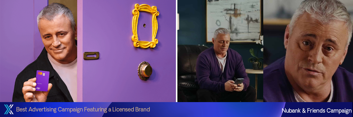 Para promover o Nubank+ e a Friends Experience no Brasil, o Nubank e a Warner Bros. lançaram uma campanha 360 graus com Matt LeBlanc. A ativação começou com quatro réplicas da icônica porta roxa do show espalhadas por São Paulo, gerando entusiasmo pelas pré-vendas exclusivas para clientes do Nubank. No principal conteúdo da campanha, LeBlanc apresenta com humor a ideia de um banco digital descomplicado, apenas para descobrir que o Nubank já existe. Ele então é convidado a explorar o Nubank+, com uma assinatura Max que oferece Amigos e outros conteúdos de streaming sem custo extra. No período de 24 de novembro a 25 de janeiro, a campanha abrangeu OOH, horário nobre da Rede Globo (Jornal Nacional, Fantástico) e plataformas digitais. A iniciativa gerou novas assinaturas e consolidou o Nubank+ como referência em serviços bancários e entretenimento contínuos.