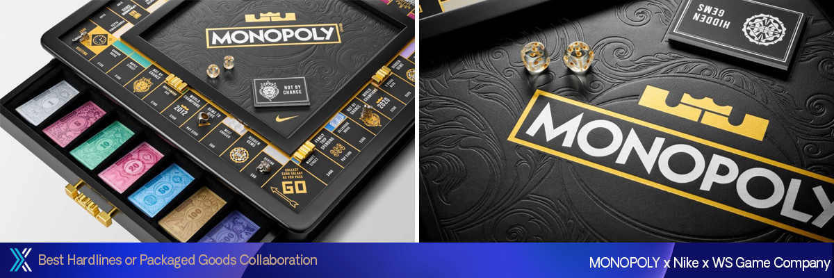 Em novembro de 2024, a Hasbro e a Nike lançaram duas edições especiais do tênis LeBron XXII com o tema MONOPOLY, “Currency” e “Token”, para celebrar sua 22ª temporada. Inspirado pelo amor de LeBron por MONOPOLY e sua dedicação ao trabalho árduo, o lançamento conquistou 28 colocações na mídia, totalizou mais de 757,8 milhões de impressões e garantiu um lugar na Lista de Brinquedos e Jogos Licenciados Favoritos de 2024 da License Global, escolhida pelo Editor’s Choice. Para apoiar o lançamento, a WS Game Company, licenciada da Hasbro, lançou um jogo de tabuleiro exclusivo MONOPOLY: LeBron James Edition. Uma edição limitada de 400 unidades foi produzida para a distribuição por influenciadores. No Dia do MONOPOLY (19/11), a House Three Thirty de LeBron organizou um evento comunitário com o tema MONOPOLY em Akron, Ohio. Alunos da I Promise School participaram de uma experiência gamificada usando dinheiro especial do MONOPOLY para aprender educação financeira e receberam o jogo de tabuleiro e sapatos especiais da colaboração.