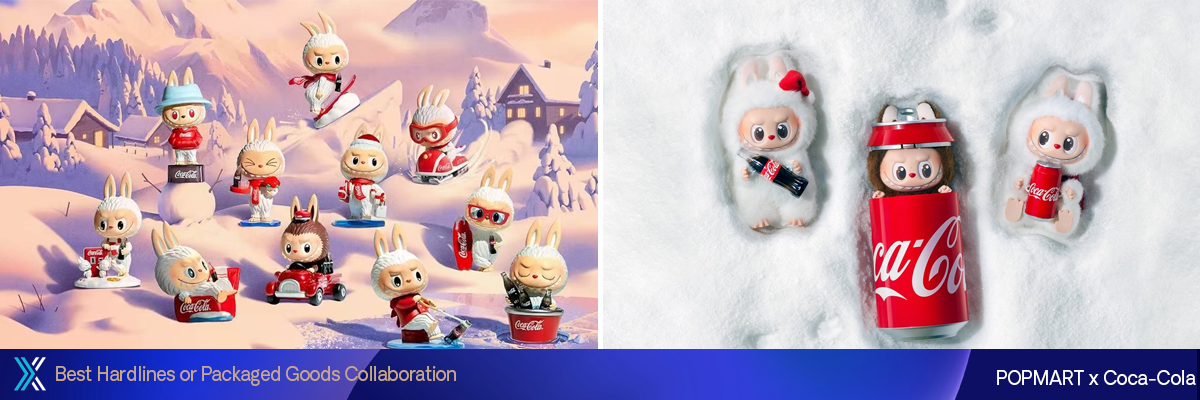 A série Labubu Coca-Cola da POP MART lançou coleções cativantes que combinam o charme invernal com o espírito icônico da Coca-Cola durante as festas de fim de ano. Apresentando “The Monsters”, Labubu e Zimomo, a colaboração em edição limitada contou com dois lançamentos: as figuras The Monsters Coca-Cola e a caixa surpresa de pelúcia de vinil The Monsters Coca-Cola. Com bonecos como “Snowy Mountain” e “Little Snowman”, esta série é perfeita para colecionadores de Coca-Cola que adoram a emoção das festas de fim de ano e o estilo excêntrico da Labubu. Os consumidores ficaram surpresos ao descobrir um boneco de edição secreta, o Labubu Express, com 1/120 de chance de ser desembalado. Diversos eventos digitais e experimentais foram realizados para o lançamento, abrangendo cidades como Xangai, Chengdu, Hangzhou e outras. Vídeos de desembalagem e conteúdo gerado por usuários se espalharam globalmente pelas mídias sociais, resultando em mais de 50 milhões de impressões na mídia.