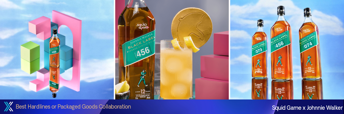 Parceira de peso no lançamento da terceira temporada de Round 6 , a Johnnie Walker apresentou sua colaboração de uísque em edição limitada, inspirando os fãs a “Escolher seu Jogador”. Com uma integração única de produtos, 456 rótulos diferentes foram desenvolvidos representando cada um dos competidores dos jogos, ajudando a aumentar a colecionabilidade para os fãs no varejo. Mais de 95.000 caixas e mais de um milhão de garrafas foram distribuídas em todos os 50 estados dos EUA e em mais de 25 países ao redor do mundo. A campanha gerou mais de dois bilhões de impressões de marketing/RP e incluiu uma ação na Times Square com o icônico jogo “Luz Verde/Luz Vermelha”.”