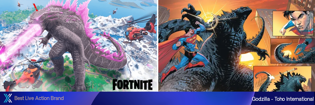 Godzilla é um ícone da cultura pop de reconhecimento global. Em antecipação ao 70º aniversário da franquia, uma campanha mundial foi lançada em uma ampla gama de categorias que foram ancoradas por dois filmes de cinema: Godzilla Minus One (Toho Studios) e Godzilla x Kong: O Novo Império (Legendary Pictures). Godzilla Minus One viria a ganhar um Oscar no 96º Oscar. O “Rei dos Monstros” também apareceu em crossovers com IPs distintos, incluindo Liga da Justiça da DC Comics, o Universo Marvel Comics e Power Rangers da Hasbro. Godzilla também foi destaque na série Monarch – The Legacy of Monsters da AppleTV+ . Os destaques de videogame/interativos incluem Fortnite, Call of Duty, Minecraft, BrawlStars, Raw Thrills e Stern Pinball. Os destaques de moda incluem Uniqlo, H&M, Santa Cruz Skateboards, Billionaire’s Boys Club, RIPnDIP, Brain Dead e Tokidoki. Os destaques da ativação incluem San Francisco Giants, McDonald’s e Circle K. Os destaques dos brinquedos/colecionáveis incluem Funko/Mondo, Playmates, Bandai, Super7, Hasbro, Mattel, McFarlane e Jada Toy.