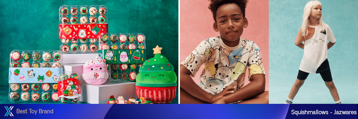 Squishmallows, a marca global de estilo de vida multigeracional, consolidou-se como uma força dominante na cultura popular, reivindicando com orgulho o título de marca de pelúcia mais vendida e a segunda marca de brinquedos mais vendida em geral. Com mais de 200 milhões de unidades vendidas e 3.000 estilos exclusivos, a marca expandiu com sucesso seu alcance para mais de 60 países. A Squishmallows colaborou com mais de 100 parceiros de primeira linha, abrangendo inúmeras categorias de produtos de consumo. O programa de licenciamento global da marca foi lançado em 2021, atraindo os maiores nomes em parceiros de produtos de consumo, incluindo McDonald’s (com um McLanche Feliz global com brinquedos de pelúcia exclusivos), Universal Music Group (playlists personalizadas), WK Kellogg Co, See’s Candies, PUMA, H&M, Crocs, TONYMOLY, PopSockets, CLUE e muito mais. Todos os dias, em qualquer lugar, os fãs podem experimentar o estilo de vida Squishmallows em milhares de produtos autênticos.