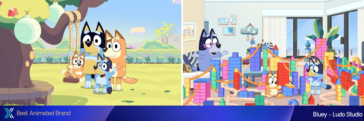 Bluey foi a série mais transmitida nos EUA em 2024 (55,6 bilhões de minutos). Disponível em mais de 140 territórios. O novo conteúdo inclui o primeiro episódio estendido (The Sign), episódios e minisódios. O programa recebeu prêmios da Peabody, TCA, Kidscreen e muito mais. O programa CP abrange categorias importantes, muitas com crescimento recorde, em mais de 65 mercados e com 450 licenciados globalmente. O Primeiro Natal de Bartlebee estreou como um best-seller do NYT. Bluey foi a segunda maior propriedade de personagem de brinquedos pré-escolares (EUA, 2024). Os jogos Bluey Keepy Uppy e Bluey Hide & Seek (Moose Toys) ganharam o Prêmio TAGIE de “Licença Mais Inovadora do Ano” e foram finalistas do TOTY de “Licença do Ano” e “Brinquedo Pré-escolar do Ano”. “Bluey: Rug Island” estreou em primeiro lugar na Billboard Kids Albums. O Experiential Bluey’s World estreou na Austrália. O BlueyxCAMP foi inaugurado em Chicago, Boston, Filadélfia e Nova York e ganhou o prêmio “(LBE) do Ano” do Pulse of Play. O Bluey’s Big Play viajou o mundo todo. A série digital Bluey Book Reads, indicada ao Kidscreen Award, foi lançada com mais de 75 milhões de visualizações.