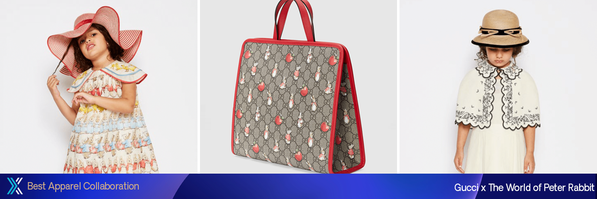 A coleção global World of Peter Rabbit x Gucci Primavera 2024 marcou a primeira coleção Peter Rabbit da Gucci. Inspirada nas obras de Beatrix Potter, a coleção combina a jovialidade moderna com o design clássico, atraindo crianças e evocando nostalgia em adultos, oferecendo uma linha de produtos única. A coleção inclui mais de 50 SKUs com estampas que apresentam o icônico logotipo “Double G” da Gucci com detalhes de Peter Rabbit, delicados vestidos em ponto cruz e uma deslumbrante capa de algodão bordada, além de mochilas, camisetas e bolsas tote. Disponível globalmente nas lojas Gucci, em seu site, em concessionárias e em varejistas de luxo, os mercados de destaque incluem China, Emirados Árabes Unidos, América do Norte e Itália. A venda direta foi fenomenal, demonstrando a demanda do consumidor por esta marca com herança nostálgica.