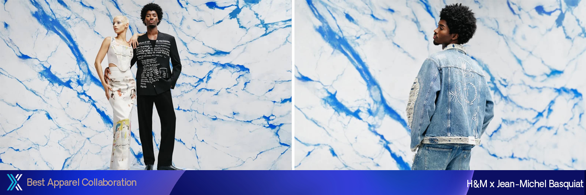 Esta “colaboração dentro de uma colaboração” tripla foi uma das colaborações de vestuário mais criativas e badaladas de todo o ano de 2024, e os números mostram isso. Toda a coleção de vestuário e diversos produtos macios esgotou em poucas horas após o lançamento e recebeu elogios significativos das principais publicações de moda e cultura do mundo, incluindo Vogue , Art News , Esquire , Essence , The Business of Fashion e muito mais. Para a coleção, a influente marca de moda nova-iorquina Who Decides War focou em obras menos conhecidas de Basquiat e as reinterpretou em seu estilo característico, oferecendo aos clientes uma fusão incrivelmente única e intransigente de arte, artesanato e alta costura a preços acessíveis da H&M. Os fundadores da Who Decides War foram originalmente inspirados pela exposição “King Pleasure” de Basquiat em 2022, organizada pelas irmãs de Basquiat.
