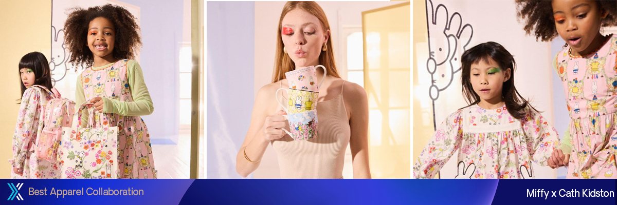 Uma colaboração multiproduto entre a Miffy e a marca britânica de estilo de vida Cath Kidston foi lançada globalmente em abril de 2024. A linha de edição limitada incluiu uma coleção exclusiva de bolsas, acessórios, pijamas e vestidos para mulheres e crianças. A coleção de canecas “Made-In-England” esgotou no pré-lançamento. A fusão de florais pintados à mão com o amado mundo gráfico da Miffy foi apoiada por uma campanha de pré-lançamento, prévias e dicas de conteúdo em vídeo “dos bastidores”. A coleção esgotou em algumas semanas. Os resultados superaram em muito as expectativas da empresa-mãe NEXT Plc e a crescente popularidade da Miffy como um ícone atemporal está se mostrando extremamente bem-sucedida. Isso também ficou evidente em colaborações recentes com Tommy Hilfiger, Mulberry e Starbucks.