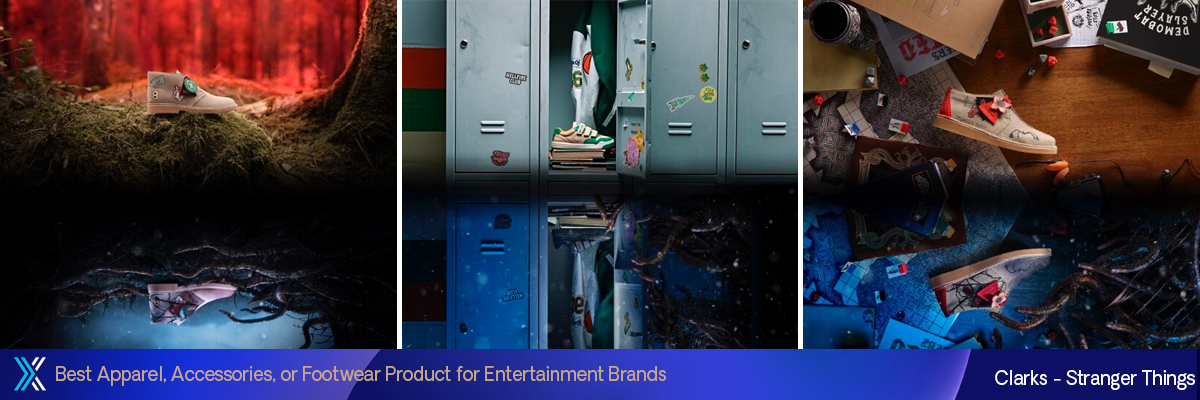 A Netflix convidou os fãs mais jovens da série a liberarem seu poder interior com uma extensa coleção Clarks x Stranger Things, que abrange desde tênis retrô nostálgicos com as cores do time de Hawkins, com couro premium e estampas de Stranger Things em relevo, até uma linha de tênis estilo escola inspirados no Mundo Invertido. A coleção foi apoiada por uma campanha de 360 ​​graus, além de uma tomada das vitrines da John Lewis & Partners na Oxford Street, em Londres, e uma ativação imersiva de três dias no shopping Westfield, também em Londres. O engajamento dos fãs foi sem precedentes, com o vídeo da campanha alcançando mais de 23 milhões de visualizações no TikTok da Clarks.