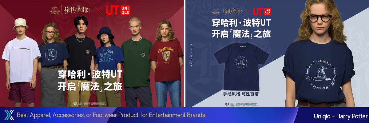 A coleção Uniqlo UT x Harry Potter foi lançada em abril de 2024. O produto licenciado não inclui apenas os designs exclusivos das quatro casas famosas de Hogwarts, mas também incorpora elementos clássicos como varinhas, feitiços e Chapéus Seletores do Mundo Mágico de Harry Potter. O foco no orgulho da casa de Hogwarts sempre foi um aspecto muito famoso e icônico do conteúdo relacionado a Harry Potter. Por isso, esta coleção é muito procurada pelos fãs de Harry Potter e mais de 100.000 peças foram vendidas em um mês em quase 1.000 lojas na China.