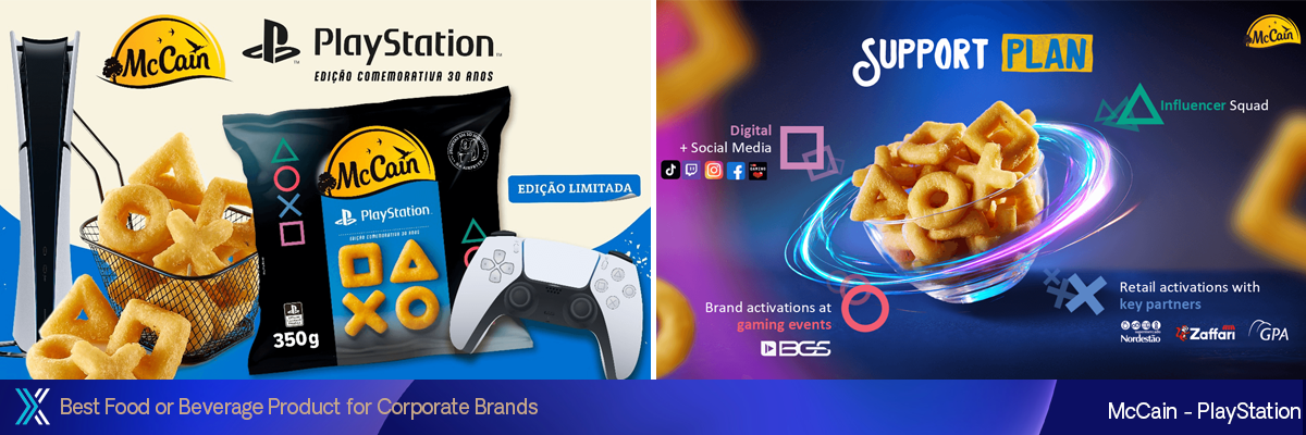 A McCain, líder global em produtos de batata congelada, fez uma parceria com a SIE para celebrar o 30º aniversário do PlayStation com um produto exclusivo e inovador: batatas fritas em formato de PlayStation. Este lanche de edição limitada apresenta os icônicos símbolos dos controles — triângulo, círculo, X e quadrado — destacando-se por unir a culinária e a cultura dos games de uma forma única e envolvente. Ao combinar a crocância e o sabor característicos da McCain com essas batatas fritas em formato exclusivo, essa colaboração criativa não apenas apresentou uma maneira divertida para os jogadores aproveitarem seu lanche favorito, como também marcou a entrada estratégica da McCain no mercado de games. O produto foi excepcionalmente bem recebido pelos varejistas, que o veem como uma inovação moderna e disruptiva, com forte potencial de distribuição. Para maximizar o engajamento, o lançamento foi apoiado por um forte plano promocional, com colaborações com influenciadores e jogadores, criando conteúdo exclusivo para as mídias sociais. A campanha também inclui ativações em grandes eventos de games e conteúdo de marca durante as transmissões, garantindo ampla visibilidade e profunda conexão com o consumidor.