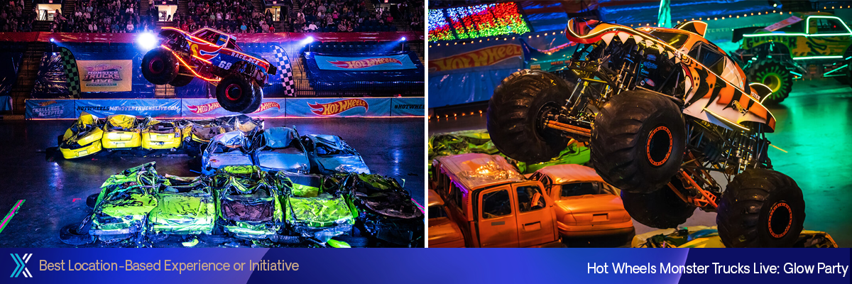 Hot Wheels Monster Trucks Live: Glow Party dá vida aos Monster Trucks Hot Wheels favoritos dos fãs neste show emocionante com sete Monster Trucks Hot Wheels. Esta turnê global está arrasando com shows esgotados ao redor do mundo, alcançando 260 cidades globais até o momento! A estreia em 2024 na América Latina teve seu maior público em um fim de semana até agora, recebendo mais de 70.000 fãs na Cidade do México. Os shows da Glow Party apresentaram acrobacias épicas, monster trucks brilhantes, shows de laser, efeitos teatrais espetaculares, festas dançantes e motocross freestyle. Lançada em 2019, esta turnê ao vivo continua a evoluir com temas inovadores e é um pilar fundamental para esta franquia de monstros que inclui brinquedos, produtos de consumo, conteúdo, música e muito mais.
