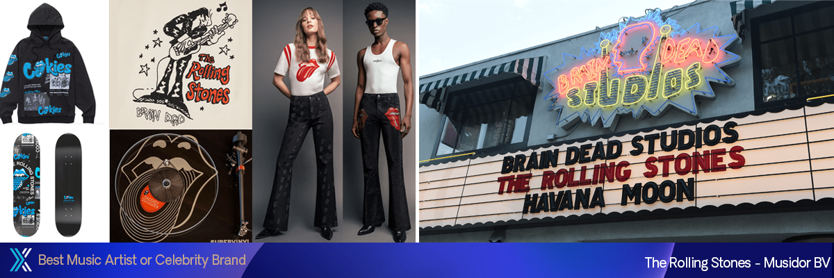 Para celebrar os Rolling Stones em 2024, diversas colaborações e ativações de marcas foram lançadas ao longo do ano. A Supervinyl, uma loja de discos em Hollywood, deu início às vendas de suas roupas RS de edição limitada e toca-discos personalizados com uma noite de música dos Stones, o exclusivo Crossfire Hurricane Rum da banda e uma vitrine personalizada da Hackney Diamonds. A Brain Dead Studios, uma marca de streetwear, promoveu uma aquisição de cinema e loja onde os convidados puderam assistir a uma exibição do filme do show The Rolling Stones: Havana Moon , um DJ tocando todos os Stones e comprando a colaboração recém-lançada. A PHIX, conhecida por roupas masculinas premium inglesas com estética dos anos 1970, prestou homenagem aos Stones equilibrando perfeitamente o luxo com o uso ousado do famoso logotipo da língua da banda em uma coleção limitada de calças cravejadas de strass, camisas com glitter e jaquetas com botões em relevo. A Cookies, não apenas uma empresa de cannabis, cultivou uma vibração forte e rock ‘n’ roll com sua colaboração com os produtos dos Rolling Stones, aplicando o azul característico da Cookies ao icônico logotipo da língua dos Stones em roupas, chapéus, mochilas e tapetes.