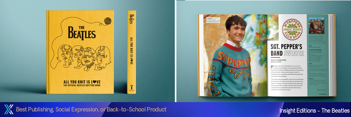 Este lindo livro de 208 páginas, totalmente licenciado e encadernado em tecido, contém 27 padrões de tricô recém-criados, inspirados no arquivo exclusivo da Apple com detalhes de design e arte de álbuns dos Fab Four. Repleto de fatos sobre a icônica banda e imagens deslumbrantes que demonstram seu estilo, o livro permite que tricoteiras caseiras criem suéteres, cardigans, acessórios, roupas infantis e utensílios domésticos para adultos, aconchegantes, com detalhes deslumbrantes e inconfundivelmente Beatles. Os padrões são projetados para agradar a todas as idades e, quando feitos com os fios sugeridos, têm como objetivo resultar em peças tradicionais que os fãs irão valorizar.