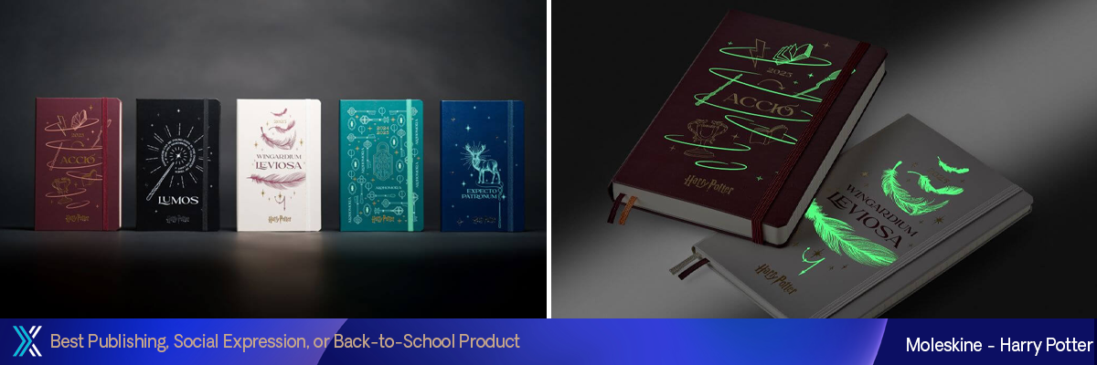 Entre no Mundo Mágico e anote seus feitiços e ingredientes de poções nesta cativante coleção de papelaria social, composta pelo icônico caderno Moleskine e complementada com agendas, canetas, mochilas e uma caixa de colecionador. Feitiços são o tema da coleção, lindamente ilustrada e produzida com elementos temáticos em seu interior. Os feitiços também são evocados pelo efeito que brilha no escuro usado em cada produto, criando uma experiência imersiva de escrita mágica.
